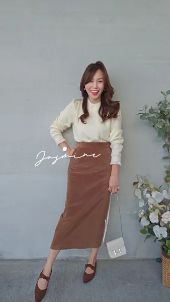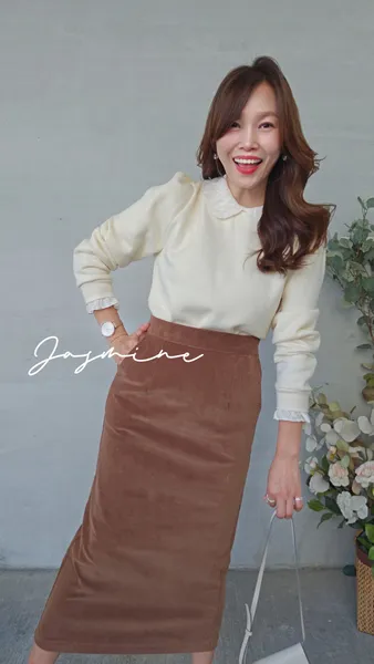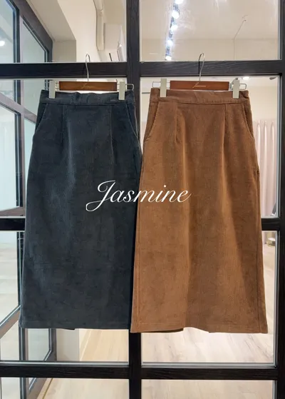 後叉車線細絨修身裙