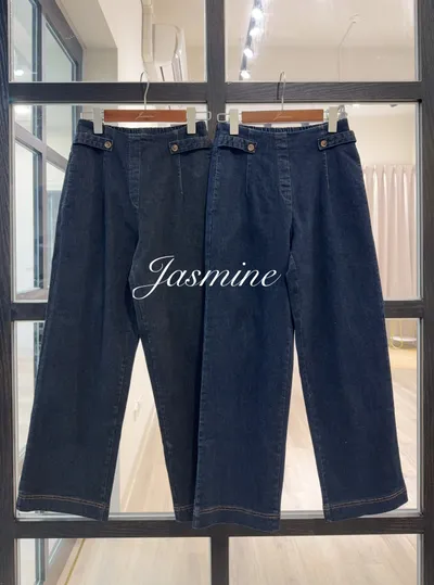 腰釦車線牛仔寬褲