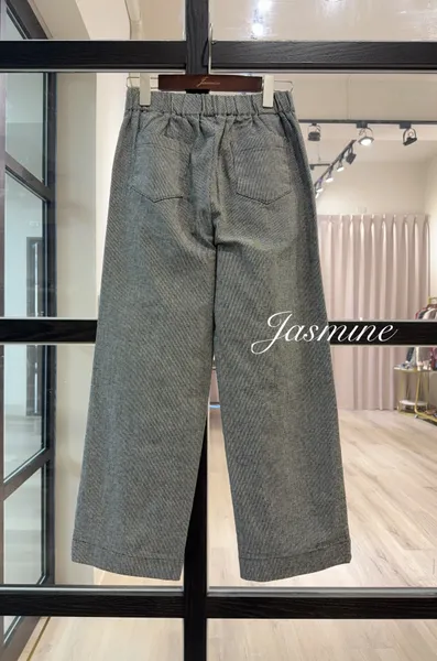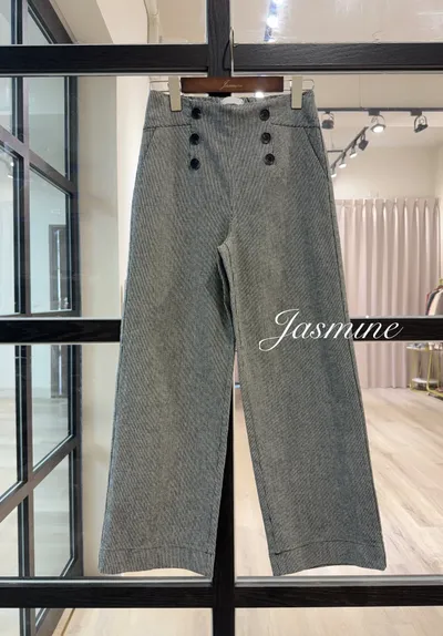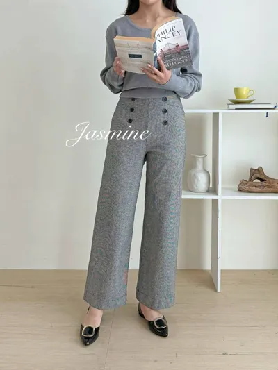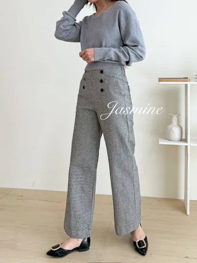 六釦千鳥格口袋彈性寬褲