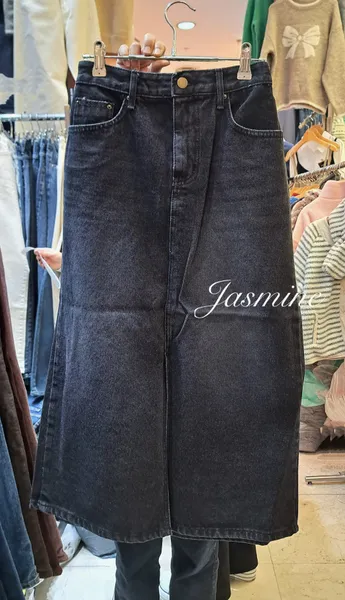 前叉微刷色修身牛仔裙