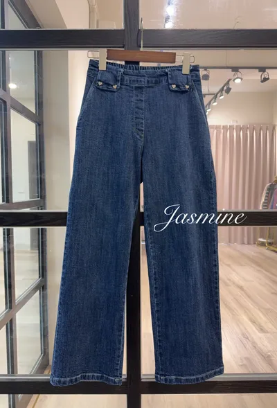 愛心小釦口袋牛寬褲