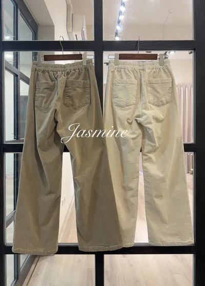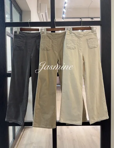 小口袋車線薄毛直條絨寬褲
