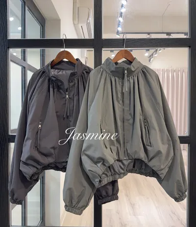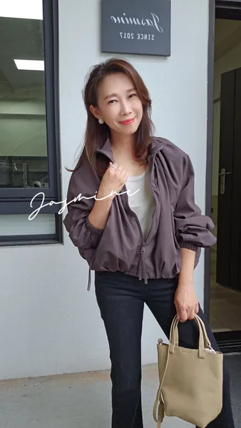 立領抓褶拉鍊口袋外