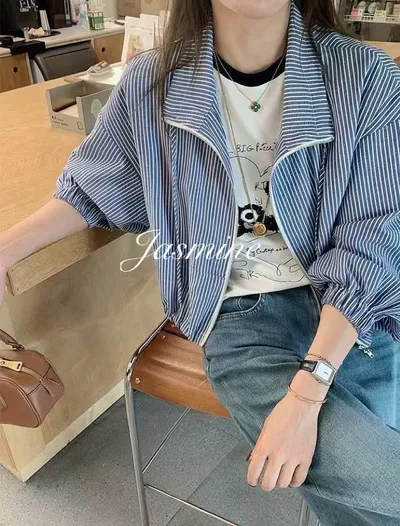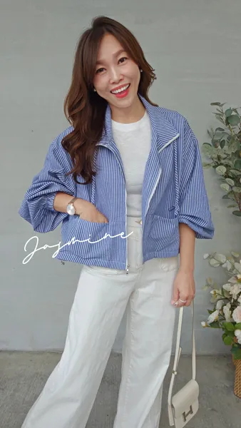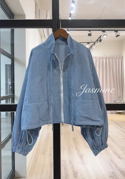 條紋下拉領綁拉鍊外