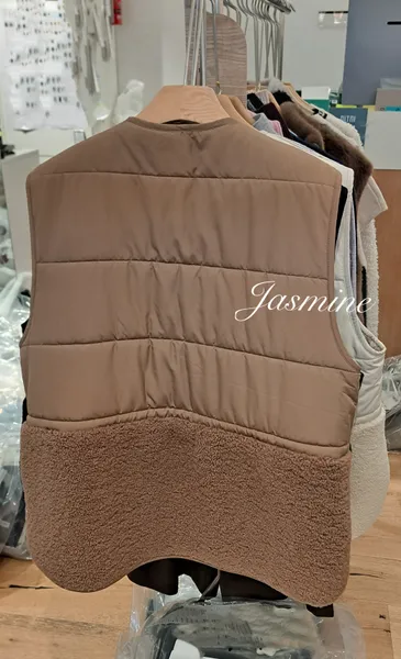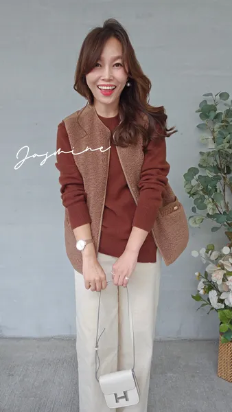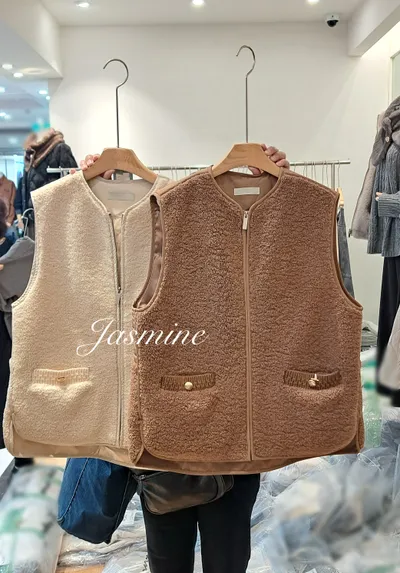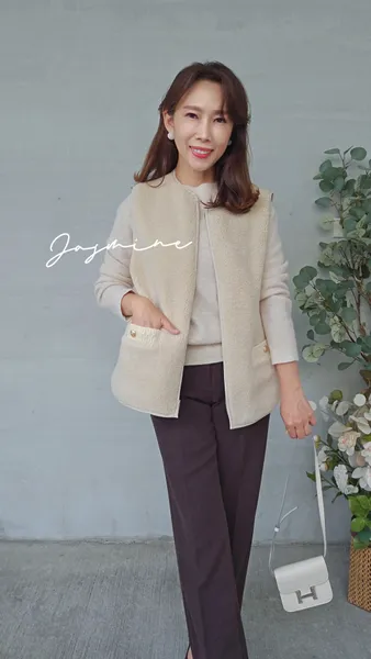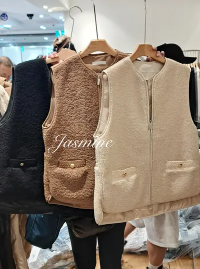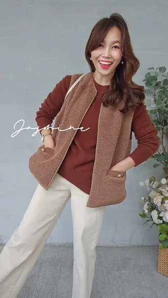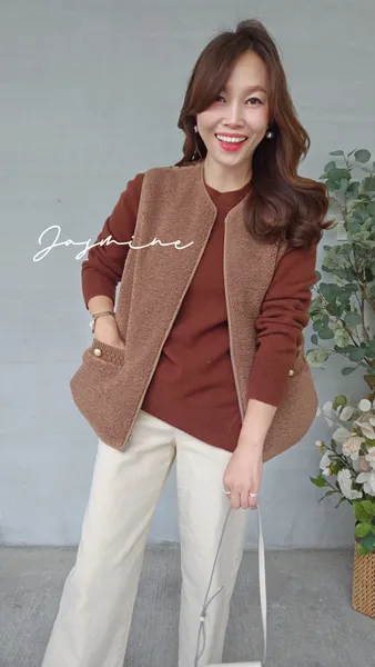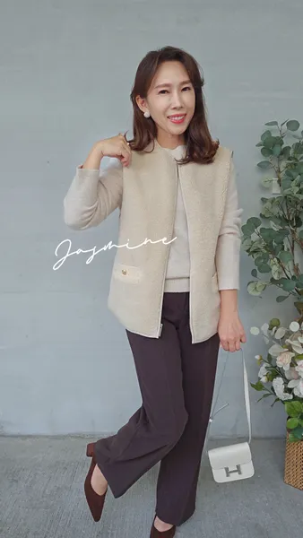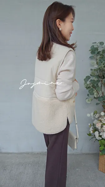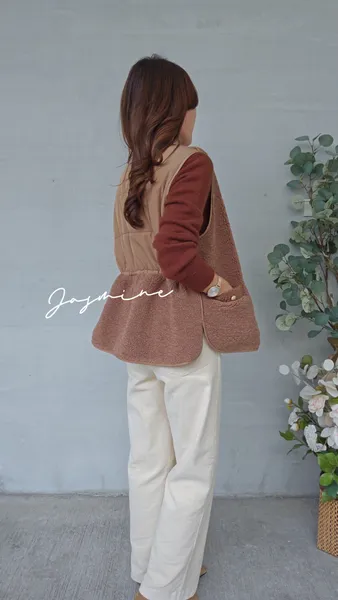 口袋金釦Q毛鋪棉背心
