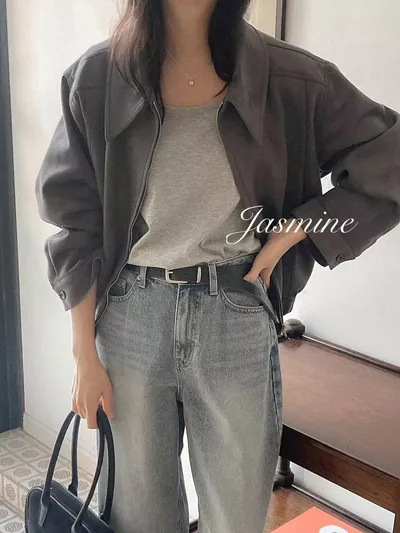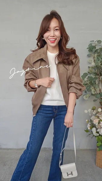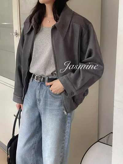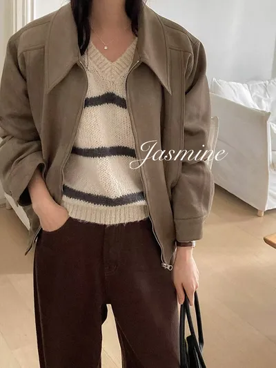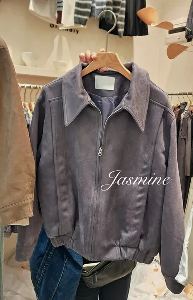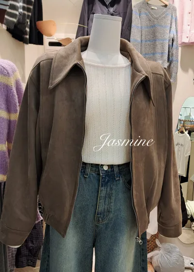 接布車線麂皮拉鍊外套