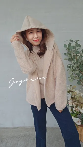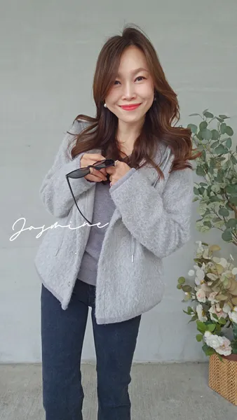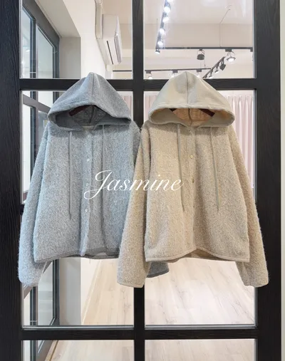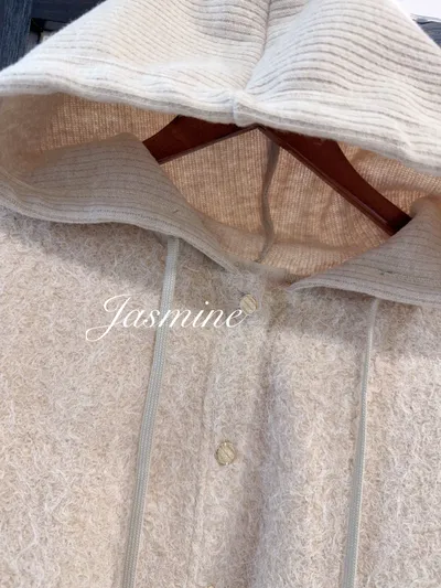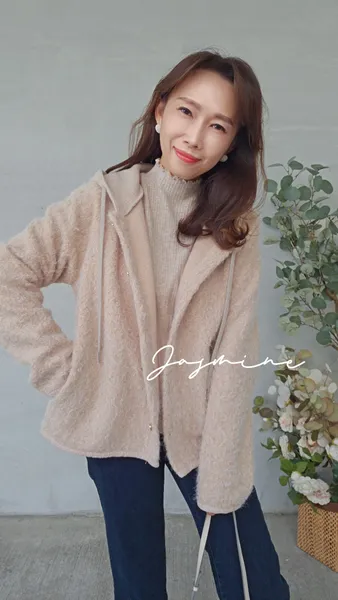 針織連帽開釦毛料外