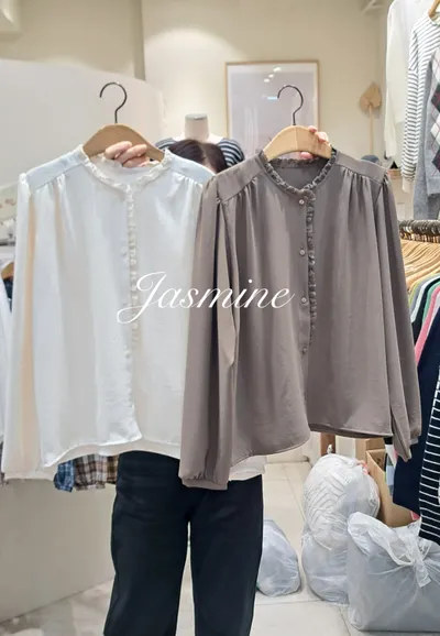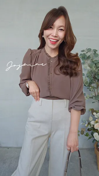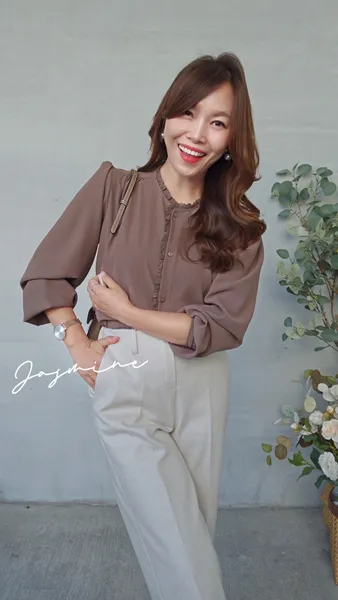 接蕾肩抓排釦挺雪紡